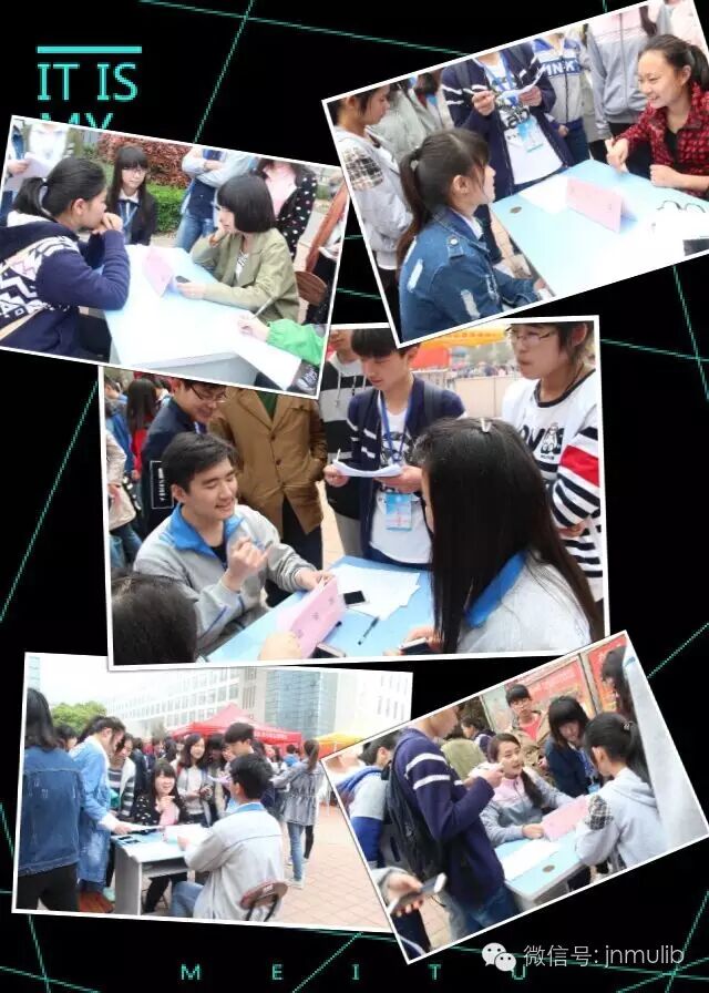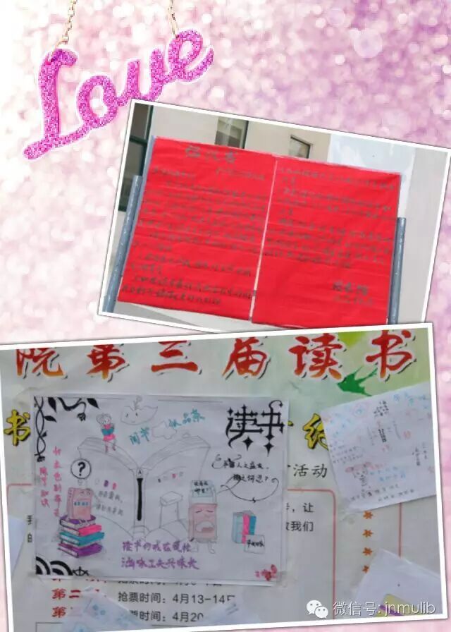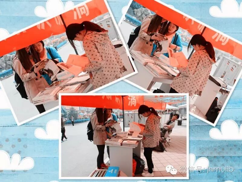 图书馆读者协会于南北餐厅之间举办了图书 漂流活动。图书馆提供漂流图书,让图书在济 医流动起来。书是知识的海洋,要发挥书的功 效,就要让更多的人得到书中的知识,读书漂 流活动就是让书漂起来,让更多的人看到这本书,让更多的人能得到书中的知识,让书发挥它最大的功效。
